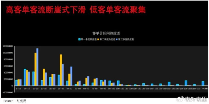 可以看到,今年前三季度,客单价在100元以上餐厅的客流量,几乎“断崖式”下降。