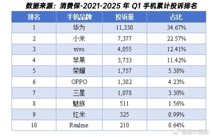 OPPO Find X9 系列热销,还离不开过硬质量与良好口碑的双重加持。据中国电子商会旗下消费保平台统计,2021 年至 2025 年 Q1 期间,平台累计收到手机类投诉 32,680 件。在国内六家主流手机厂商中,OPPO 的投诉量排名最低,与投诉量第一名的差距超过 30%,用数据印证了其产品质量的可靠性。