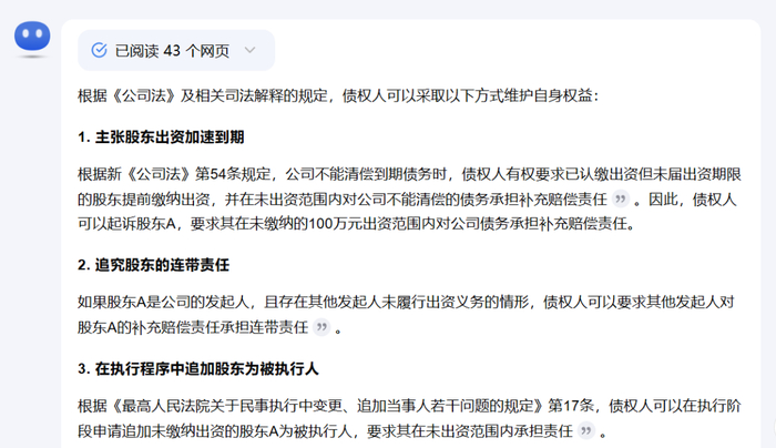 更重要的是,它准确引用了最新的《公司法》,并提出了较为合理的解决方案,展现了其在复杂法律问题上的强大潜力。
