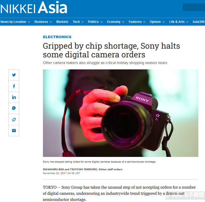檬妹23日从日媒获悉,日本索尼(Sony)在半导体长期短缺的的背景下,采用了与众不同的举措,即不接受一些数码相机订单。这体现了半导体短缺对全行业的影响。