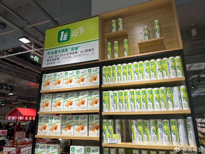 大润发Super主要从两点来增加差异化。一方面,推出“加量不加价”和自有品牌“超省”系列,前者是由品牌为大润发定制,后者是大润发自行研制生产,都只有在大润发才能买到。
