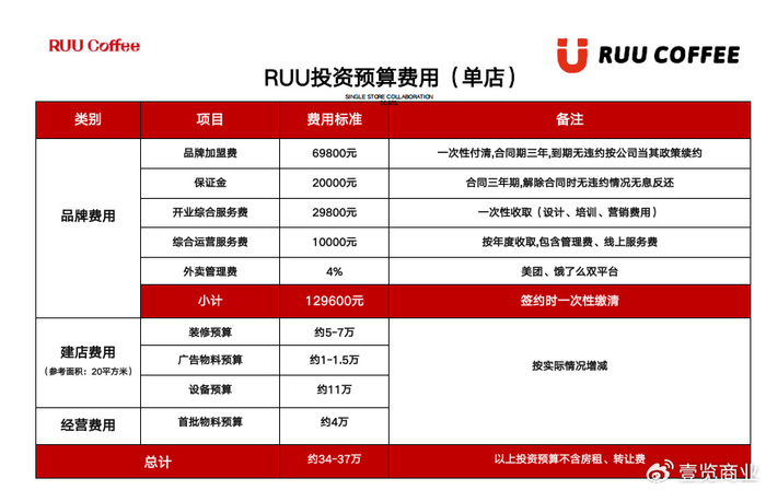 另一方面,RUU 成立3年,在咖啡市场知名度有限,通过双拼店可实现柠季的流量复用,既能降低成本、转化老客户,又能吸引柠季的老加盟商,只需投入几万元升级门店,便可实现双品类运营。