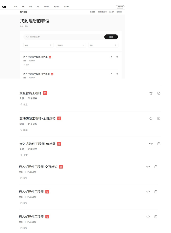 图片来源:理想汽车社招信息值得关注的是,这些覆盖了硬件、软件、算法等核心领域的岗位,均被打上了 “急招” 的标签。