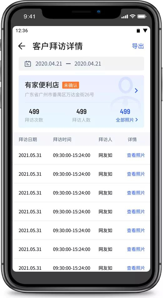 马克水印相机设置了免费的客户拜访系统,不同商店的客户信息可以同步到客户拜访统计数据,客户名称、拜访次数、访问者和相应的照片都记录在云空间,不怕丢失和篡改。