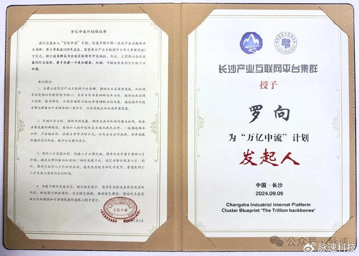脉速科技创始人兼CEO罗向在此次主题论坛上,与会企业代表一致表示自愿加入“万亿中流”计划,致力于打造中国中部一流的产业互联网平台集群。目标是在2028年左右,实现长沙产业互联网平台年交易额突破1万亿元,推动该集群成为全球互联网的重要力量。各方承诺将以合作共赢为行业准则,携手建设一个更加健康、和谐、可持续发展的万亿级产业环境。