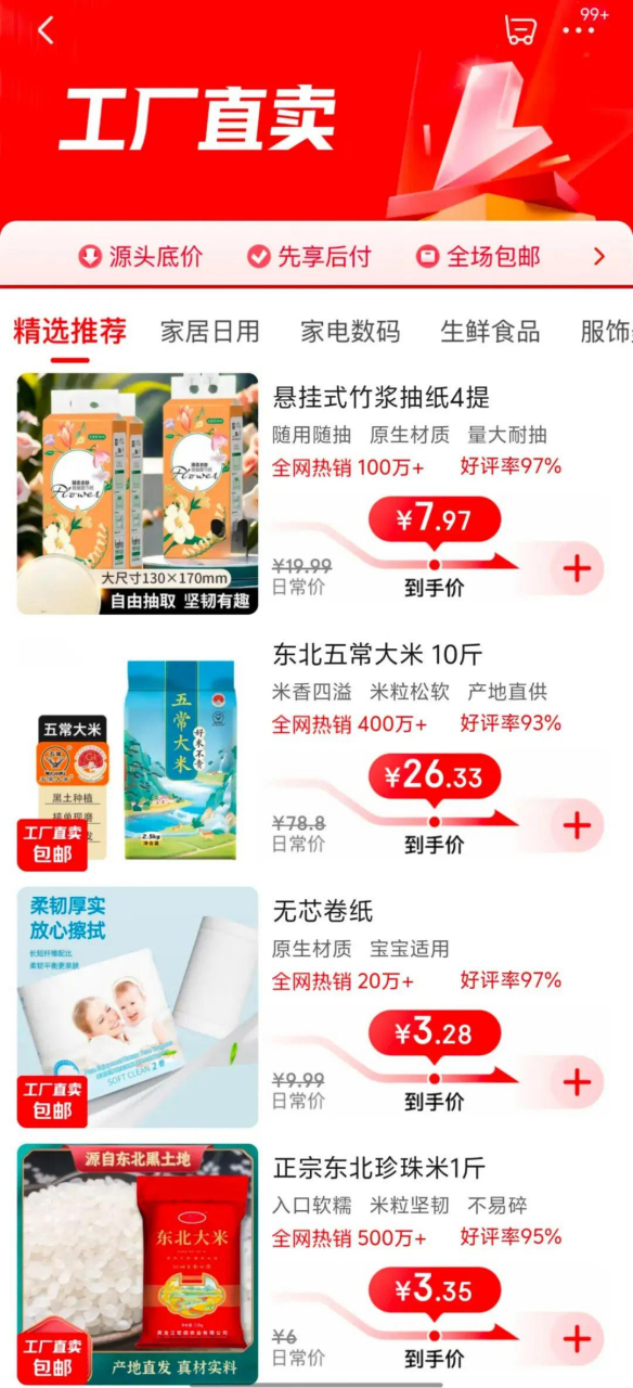 然而2024年9月份,天禹大米赶上了京东对工厂型商家推出的扶持举措,参加了专门为产业带商家打造的“工厂直卖”活动,商家只管供货,京东负责打爆。天禹大米迎来了大规模的爆单,平均每月销售额突破100万元,最高达到300万元,并一直持续数月。