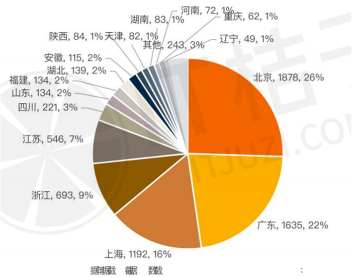 从人工智能公司所处地区分布来看,北上广依旧是人工智能行业发展的主阵地。IT 桔子数据显示,截止到 2021 年底,北京共有 1878 家人工智能公司,占到总数量的 26%;广东有 1623 家公司,占比 22%;上海有 1192 家公司,占比 16%,三者瓜分走全国 64%的公司,形成绝对的第一梯队。