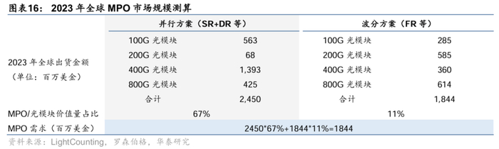 图片说明:华泰证券认为2023年全球MPO市场规模约18.44亿美元,数据来源于华泰证券