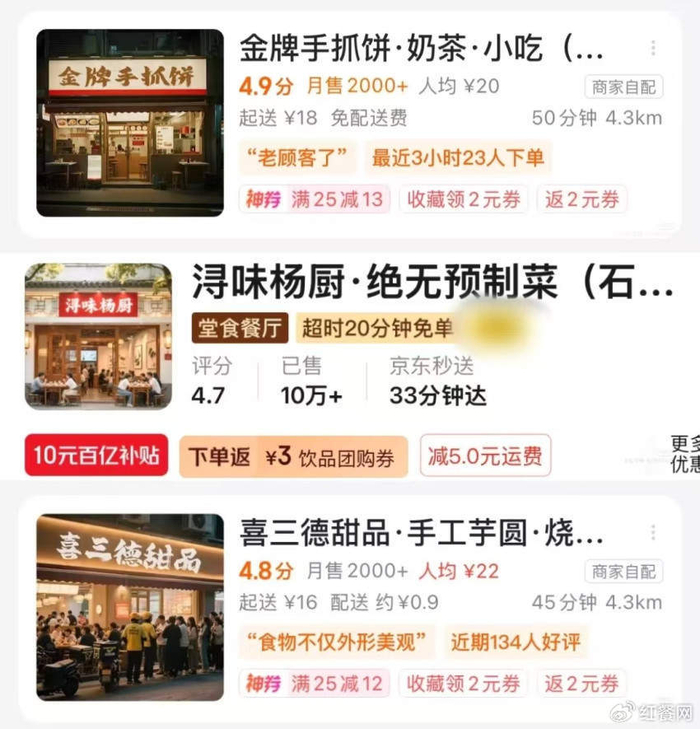 最近,红餐网观察到不少网友在社交平台上爆料,在外卖平台上出现很多外卖店用AI直接生成门头照,伪装成“高大上”的实体店门头,上演了“线上线下两幅面孔”的戏码,