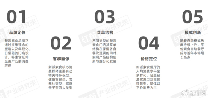 新派素食品牌在品牌定位、客群画像、菜单结构、价格定位、模式创新上均呈现出显著特征。整体来看,新派素食品牌正在通过多维创新,逐步打破小众圈层限制,向主流消费市场渗透。