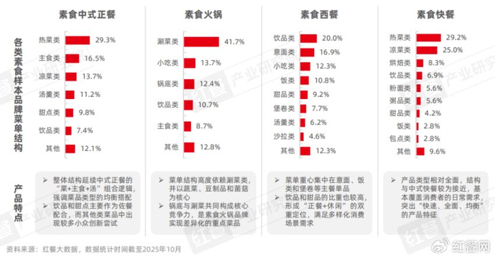 整体来看,不同素食细分类型的餐厅既保留各自的餐饮逻辑,又共同体现出素食理念在产品结构上的创新和细分化发展特征。