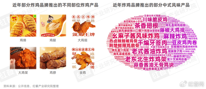 在产品创新方面,为了寻找差异化,众多炸鸡品牌深度挖掘鸡的不同部位,包含鸡翅、鸡腿、鸡架、鸡叉骨、鸡脖、鸡胗、鸡皮以及全鸡等,并在传统的美式或韩式口味基础上,积极探索多元化的炸鸡风味,比如中式本土风味以及更具地域特色的地方风味。