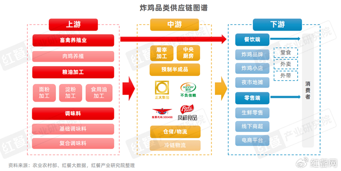 炸鸡品类的快速发展离不开上游供应链的日益完善,以圣农发展、凤祥食品、正大集团、温氏股份、大成食品为代表的鸡肉食材供应企业,以及味好美、基快富、宝立食品、富琳特等调味料企业,为下游品牌提供了品质稳定的食材供应和多样化的口味选择,进一步推动了炸鸡品类的创新与发展。