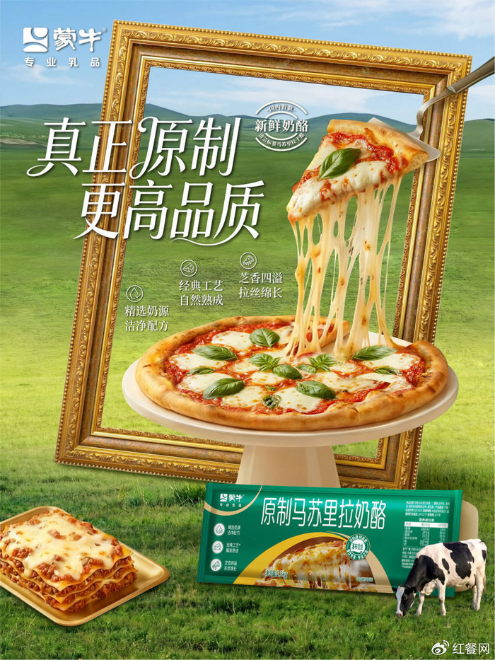 蒙牛专业乳品本次推出的新品——清洁标签原制马苏里拉奶酪,应用了“从牛奶开始,而非从凝乳块开始”的传统原制工艺。这不仅是高品质饮食体验与消费升级的直观体现,也为优化奶酪品类格局、回归产品真实价值指明了方向。