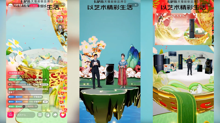 以世优科技此前参与过的虚拟演播室制作项目为例,如:为卡萨帝在天猫超级品牌日上,打造虚拟直播场景,本场活动的全程线上直播都采用了世优科技的实时虚拟演播室技术,将真实人物与虚拟环境相结合,虚实交互,用低成本的虚拟技术打造符合品牌调性的场景。