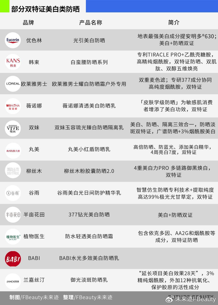 在科研端,在这个人均SPF50+的时代,市场对高数值防晒的需求其实已经趋于缓和,但去年多款美白、防晒双特证防晒产品以及防晒底妆类别产品的扎堆上市,加速了防晒的功效大融合。