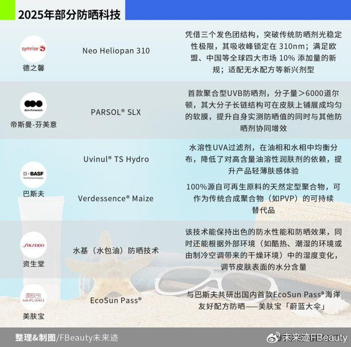从产业链上游看,防晒产品的肤感、成膜性和环境友好依旧是这一品类开发的基本功,而巴斯夫、德之馨、帝斯曼等防晒剂开发商去年推出的核心技术正是瞄准这一方向。