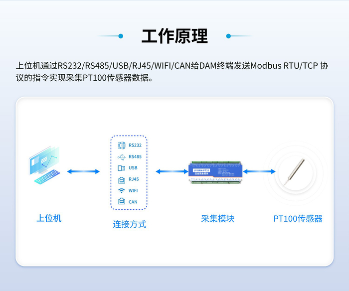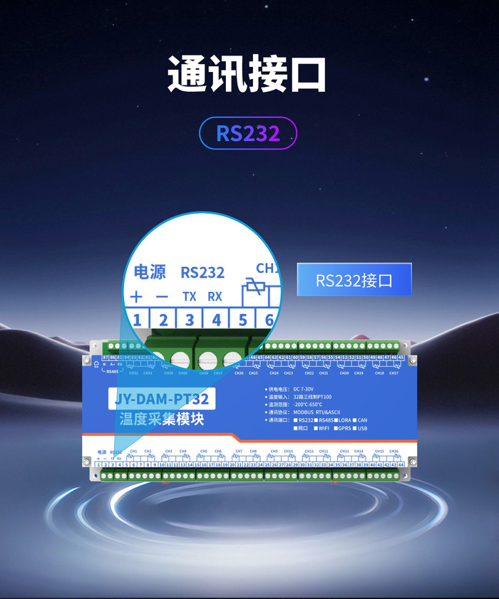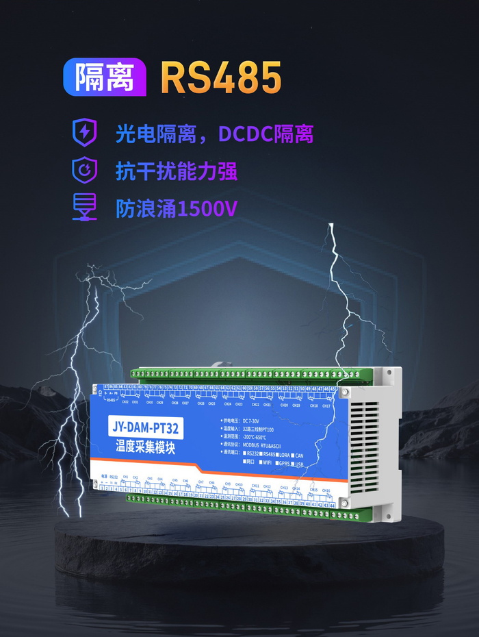 32路PT100热电阻温度采集变送器通讯接口