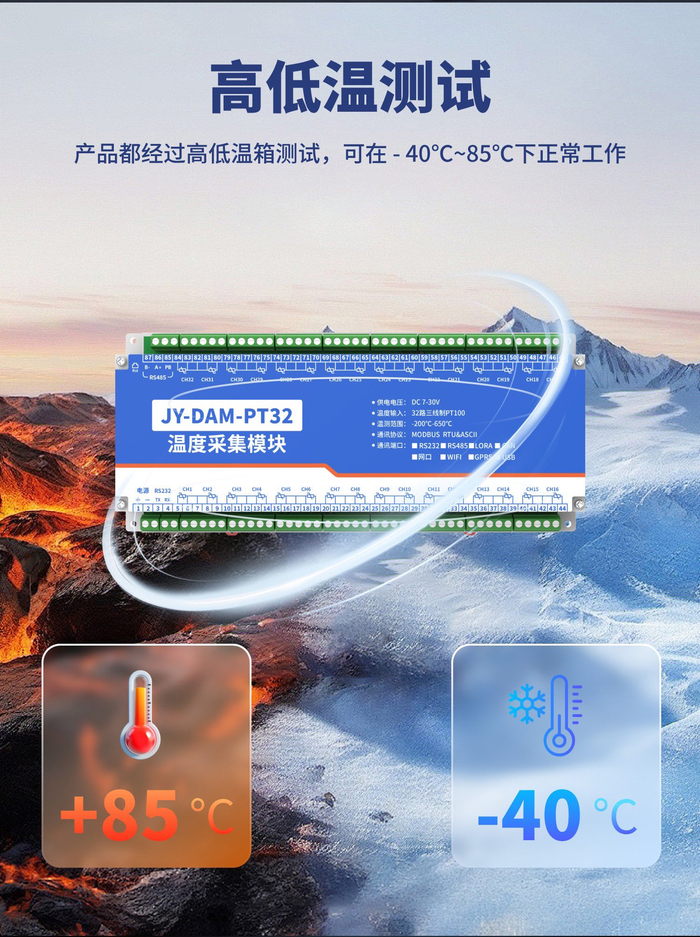 32路PT100热电阻温度采集变送器高低温测试