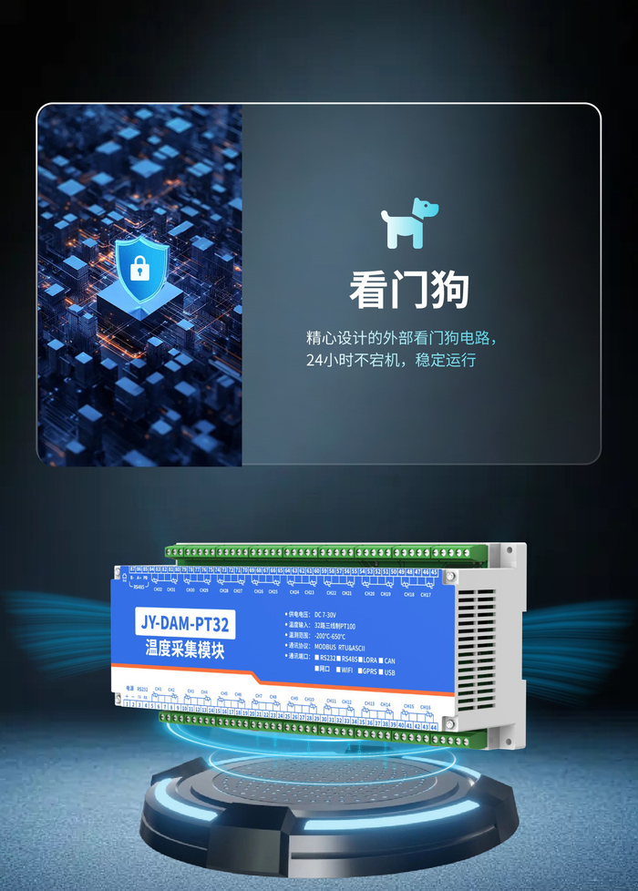32路PT100热电阻温度采集变送器看门狗功能