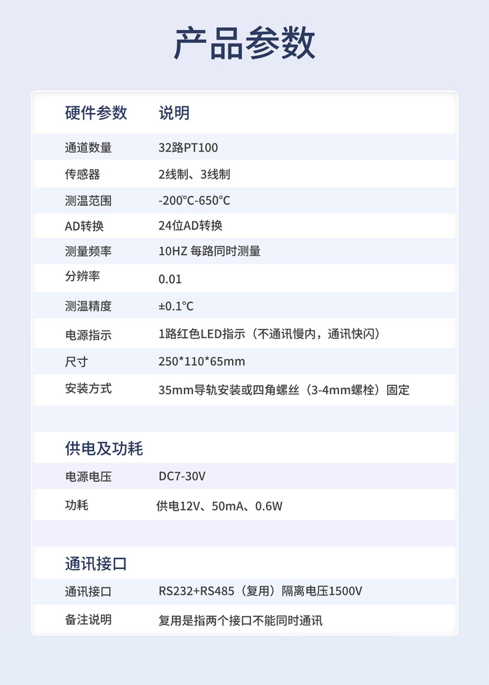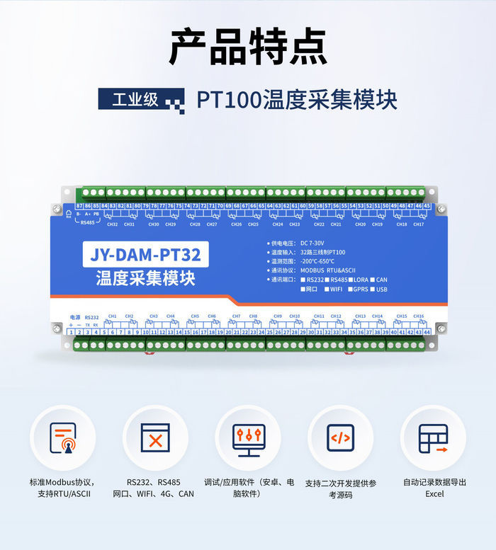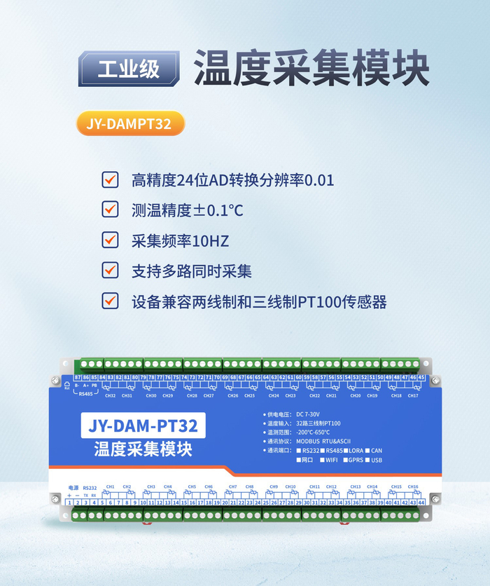 32路PT100热电阻温度采集变送器二次开发