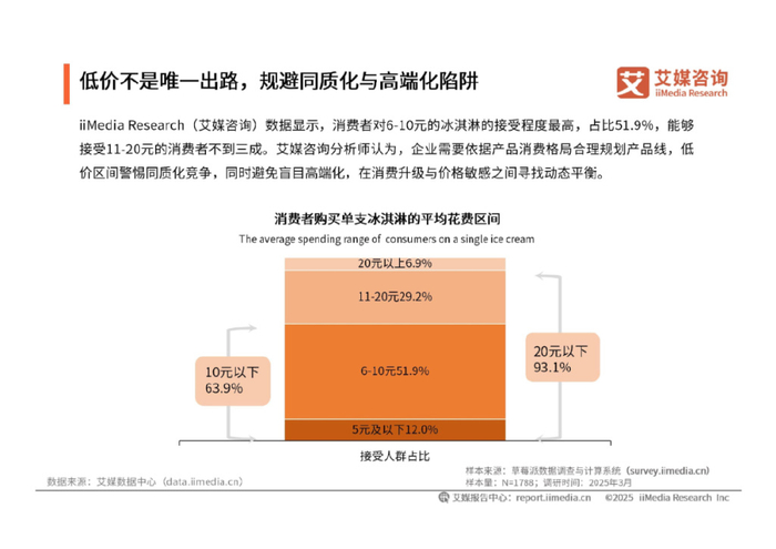 要知道,目前消费者对高价冷冻饮品的接受度十分有限。艾媒咨询披露的数据显示,2025年3月,93.1%的消费者只能接受价格低于20元的冰淇淋,仅6.9%的消费者可接受价格高于20元的冰淇淋。由此来看,野人先生的产品价格并不亲民。