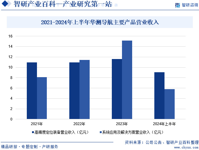 上海华测导航技术股份有限公司自2003年成立以来,始终聚焦高精度导航定位相关的核心技术及其产品与解决方案的研发、制造、集成和产业化应用,不断拓展至多行业领域,为各行业客户提供高精度定位装备和系统应用及解决方案,是国内高精度卫星导航定位产业的领先企业之一。公司秉承“用精准时空信息构建智能世界”的愿景,围绕高精度导航定位技术核心,逐步构建起高精度定位芯片技术平台、全球星地一体增强网络服务平台两大核心技术护城河,并逐步打造公司各类高精度定位导航智能装备和系统应用及解决方案在资源与公共事业、建筑与基建、地理空间信息、机器人与自动驾驶等应用板块的竞争力。数据显示,2024年上半年,华测导航高精度定位装备营业收入为9.03亿元,同比增长23.02%;系统应用及解决方案营业收入为5.81亿元,同比增长22.57%。
