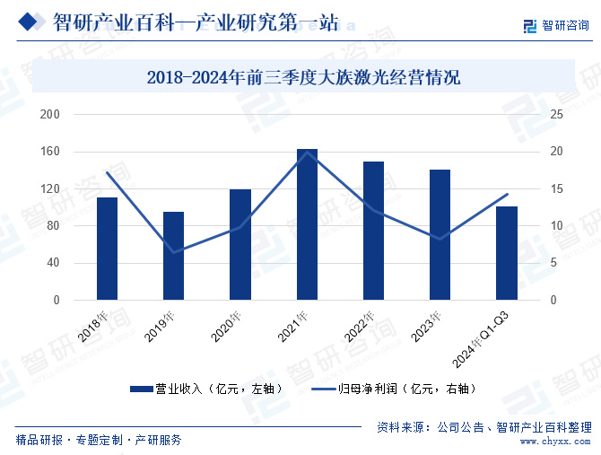 大族激光科技产业集团股份有限公司创立于中国深圳,是世界排名前三的工业激光加工设备生产厂商。公司于2004年在深圳证券交易所上市,目前全球员工超过1万人,总资产超过100亿元。大族激光专注于激光加工设备的研发、生产和销售,产品涵盖激光打标机、激光焊接机、激光切割机等多个系列,广泛应用于IT制造、电子电路、汽车配件等多个领域。大族激光多次获得国家级和国际级荣誉,包括国家火炬计划项目、中国专利优秀奖等。2023年,大族激光的半导体设备荣获年度第三代半导体设备最具影响力产品奖。2024年前三季度,大族激光营业收入为101.29亿元,同比增长7.90%;归母净利润为14.26亿元,同比增长124.21%。