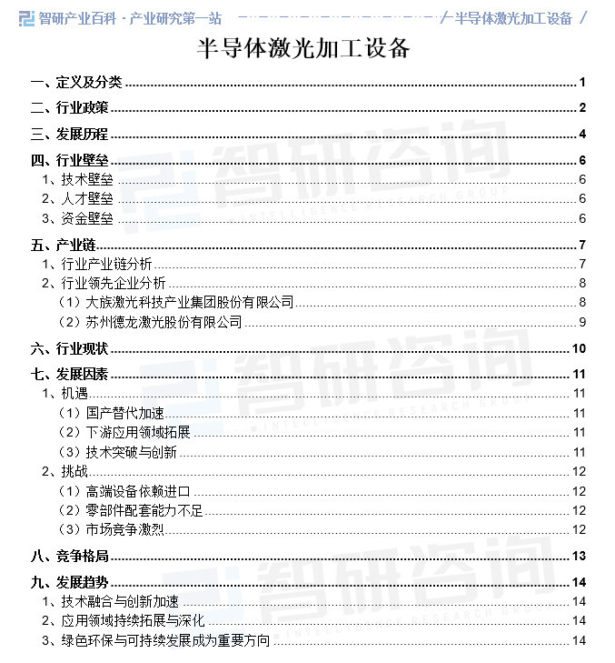 智研产业百科是智研咨询推出的产研工具平台,致力于为您提供全方位的百科式产业信息查询服务。智研咨询践行用信息驱动产业发展的企业使命,完善和丰富企业方法论,依托产业百科平台提升信息价值,持续为行业发展及企业投资决策赋能。半导体激光加工设备产业百科作为半导体激光加工设备产业一站式系统化研究工具,全面归纳了半导体激光加工设备产业知识信息,内容涵盖半导体激光加工设备产业的定义、分类、政策、产业链、竞争格局、发展趋势等,并依靠信息技术建立智能互链的行业知识图谱,为行研从业者及相关投资者提供深入的洞察力和全面的信息。