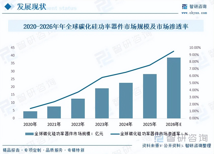 注:本文节选出自智研咨询发布的《趋势研判!2026年中国碳化硅功率器件行业产业链、市场规模、市场渗透率、竞争格局及发展趋势:市场规模将达38.8亿元,市场渗透率有望扩大至9.51%[图]》行业分析文章,如需获取行业文章全部内容,可进入智研咨询官网搜索查看。