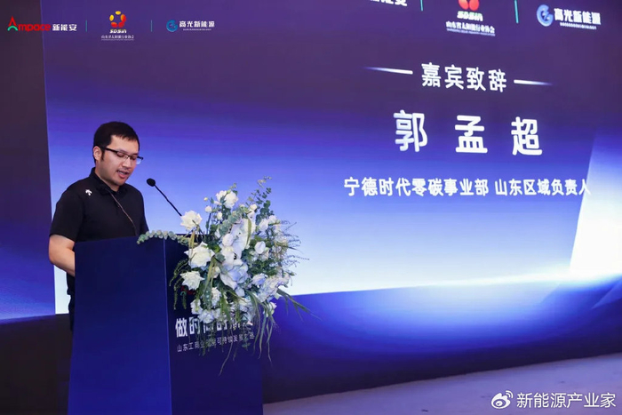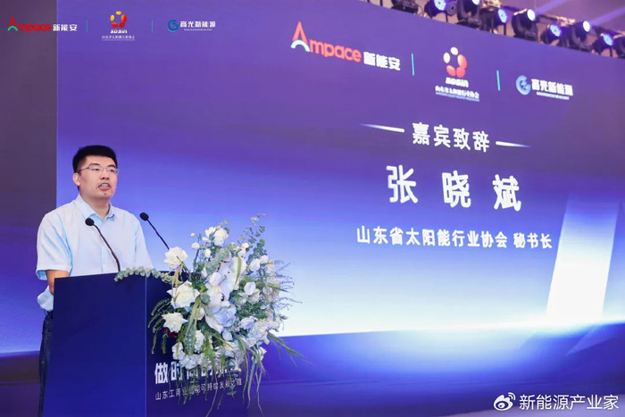 峰会伊始,山东省太阳能行业协会秘书长张晓斌、宁德时代零碳事业部山东区域负责人郭孟超、厦门新能安科技有限公司储能事业部中国区总裁马金鹏、高光新能源董事长胡遵昌作为嘉宾代表致辞。