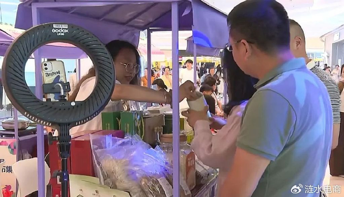 胡努娃联盟、涟福食品、一轩农业等企业展位前排起了长队,线上直播带货同步发力;市集上“涟农优品”区域品牌产品占据C位。“这是咱们涟水本地产的大米,煮饭香气扑鼻!”主播面对手机镜头侃侃而谈,她身后的展台上,鸡糕、捆蹄、红薯粉丝等精品琳琅满目,吸引了不少顾客驻足选购。