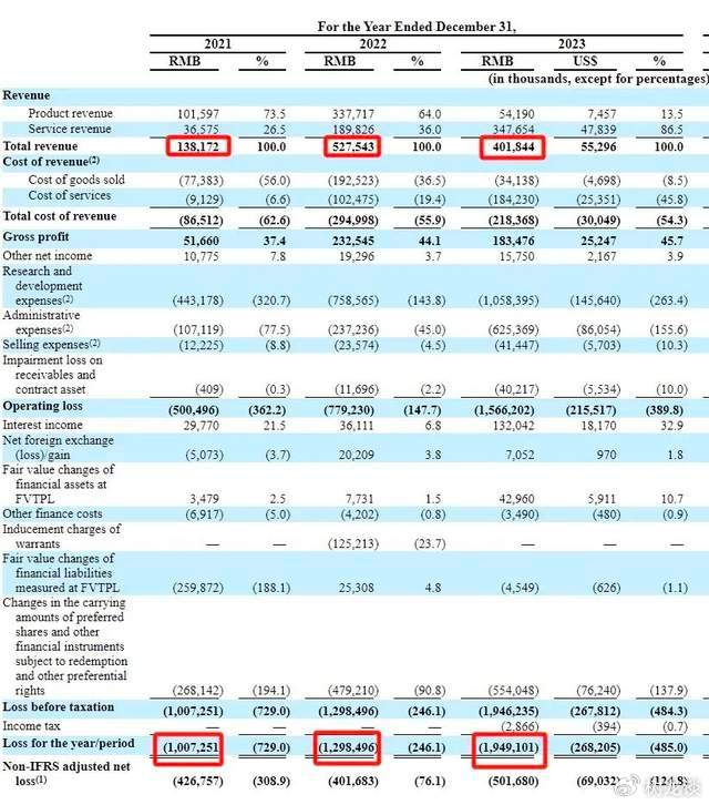 2021到2023这3年,文远知行的营收分别是1.3亿元、5.2亿元和4亿元,净亏损分别是10亿元、12.9亿元、19.4亿元。什么概念?每年要烧掉十几个亿。赚的钱和花的钱比,简直是九牛一毛。