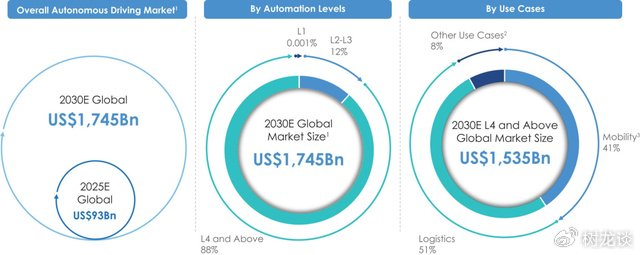现实很骨感,但理想很丰满。文远知行预计,到2030年,全球自动驾驶市场规模高达1.7万亿美元,中国的自动驾驶市场也会有6390亿美元,其中最有钱景的就是自动驾驶出租车和自动驾驶货运车。