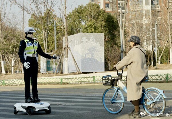 交警机器人"芜优"智警 R001是墨甲机器人针对警务场景打造的第一款警务机器人,当前她主要负责交通指挥与劝导,可通过接入信号灯系统和交通警察密切配合,更能精准识别并劝导非机动车的违法行为,让普法宣传更有温度、更有科技感。 除了路面勤务,她还搭载了多项"硬核"功能:具备自主导航移动能力,可适应不同勤务点位需求;配备高清摄像头,能够进行违停抓拍、路段视频实时监控及全景录像。
