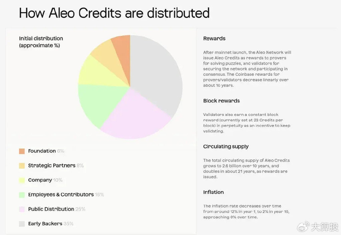 Aleo的初始Token分配模型体现了公平、合理与激励并重的原则,具体分配如下: