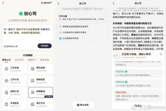 这等于给每个写作者,加了一道风控,有没有数据错误,有没有政策解读错误,有没有论点论据错误,我在内部开玩笑,我们行业的校对可以彻底下岗了,的确,我们公司的校对下岗很久了。
