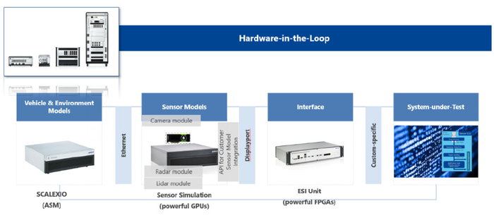 环境传感器接口(ESI)单元确保与ADAS/AD控制单元进行特定协议通信。由AURELION生成的摄像头数据,一方面可以使用真实车辆摄像头通过视频暗箱直接采集仿真场景图像,输入给控制单元;另一方面可以通过视频注入设备直接将仿真场景图像注入给ADAS/AD控制单元。