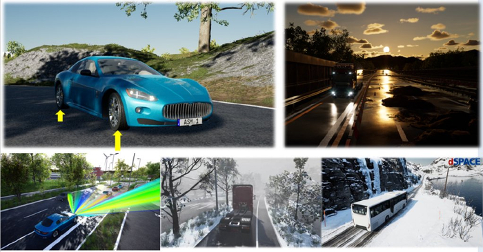 物理级传感器模型及3D渲染动画软件:对于传感器模型而言,为了提高用户的成本效益并且满足不同的测试策略,dSPACE提供了多种类型的传感器模型。有输出目标列表的真值传感器模型,也有输出原始数据的物理传感器模型。dSPACE的3D可视化仿真平台AURELION有两大技术点,一是使用Unreal虚幻引擎对图像进行渲染,实现对摄像头图片帧的真实度还原,可以对摄像头识别的敏感要素,如天气,灯光进行调节,同时通过数学模型可以对摄像头的畸变参数,暗晕色差等成像效果进行设置,可用于驾驶模拟器或摄像头激励测试等。二是AURELION可以提供四种物理传感器模型(摄像头,激光雷达,毫米波雷达,超声波雷达)用来仿真测试感知融合算法所需要的传感器RAW data数据。它利用Ray tracing光线追踪技术实现了对激光雷达毫米波雷达射线类原始数据的仿真,实现“实车场景数字化 - 虚拟场景验证 - 算法优化迭代” 的闭环,让虚拟测试与真实路况无缝衔接。