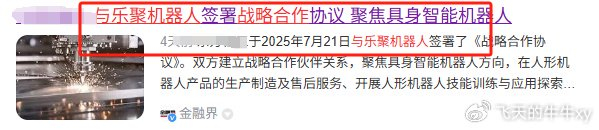 它不仅亲自参与乐聚机器人的D轮融资,还与乐聚签订了全产业链战略合作!