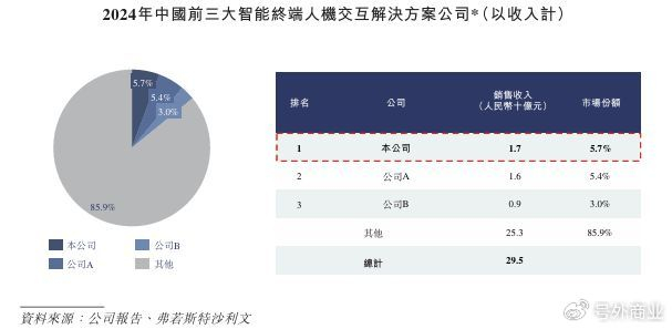 虽然智能终端解决方案贡献了近90%的收入,其中人机交互解决方案在中国市场占有率5.7%,位居行业第一。而具身智能业务虽然目前仅占收入9.3%,但被视作未来增长引擎。