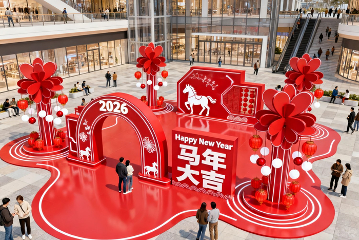 当珠江两岸的木棉花染上新春的暖意,当粤港澳大湾区的烟火气随年味愈发浓烈,深圳的时尚、广州的底蕴、东莞的活力、惠州的温润,正共同酝酿着一场属于春节的消费狂欢。对于商场而言,春节不仅是客流与营收的“黄金窗口期”,更是传递品牌温度、强化客群粘性的关键节点——而一场主题鲜明、质感出众的春节美陈,便是打开这场狂欢的“金钥匙”。